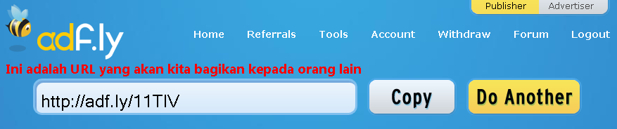 Adf.ly adalah salah satu situs yang memberikan imbalan dollar kepada setiap anggotanya hanya dengan menyingkat URL / Link dan menyebarkan link yang dipendekkan tadi apabila link itu di klik oleh orang lain.Link / URL yang akan disingkat (shorten) itu terserah kita,dengan kata lain link apa aja baik itu link web/blog anda sendiri ataupun bagi yang tidak punya web/blog boleh juga memendekkan website / blog orang lain (catatan: anda tidak bisa memendekkan link dari Adf.ly itu sendiri).Yang jelas tujuan utama di program ini ialah membuat link / URL yang kita singkat itu di klik oleh orang lain sebanyak-banyaknya.Link yang kita singkat tersebut sebenarnya adalah sarana bagi Adf.ly untuk mempublikasikan iklannya.